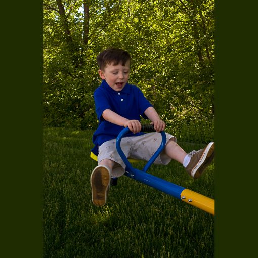 Introducing the WonkaWoo Swirling fun see saw for kids! Kids will be the hit of the neighborhood, they will also be able to play on this See Saw for hours and be encouraged to get outside and be active. This See Saw not only goes up and down, but it also spins 360 degrees for added fun. It’s a new twist on a old nostalgic item! It is made up of well constructed steel tubing and has plastic contoured seats for a comfortable ride. Under each seat there is a stopper pole for added safety and for a softer decent. It also has handles that boast a comfy soft grip. The see saw is 83.5 inches in length, and for added stability it has a wide four legged base, and an astounding 27-inch base width.
