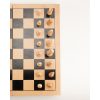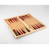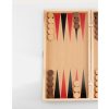 Black chess and checkers board on the outside, opens up to colorful wooden backgammon board on the inside.