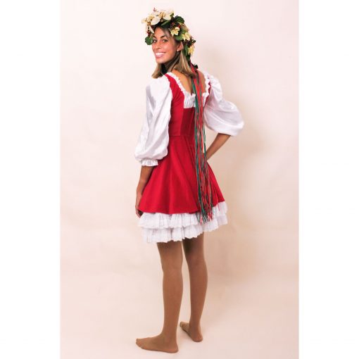 - This one piece dress is made in quality red velour with red laces that gives the look of a pleated bodice and skirt