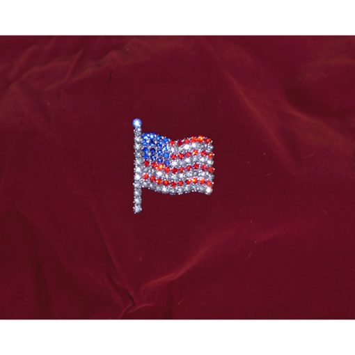 - A pin of the American flag, made out of red, blue, and silver rhinestones