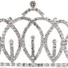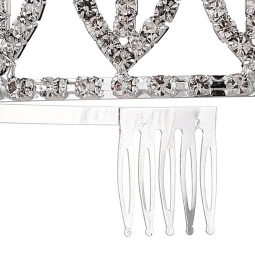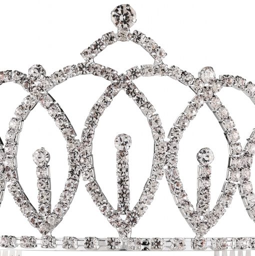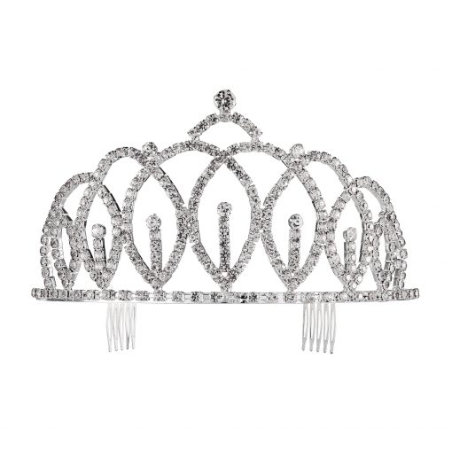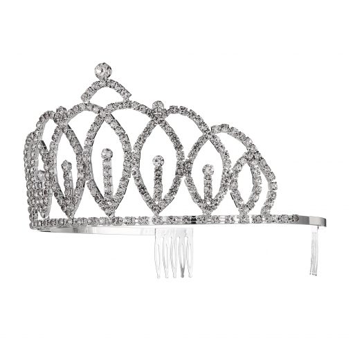 - A tiara with rhinestones in a beautiful yet traditional design with a point in the front and arcs around it