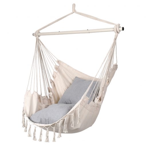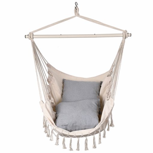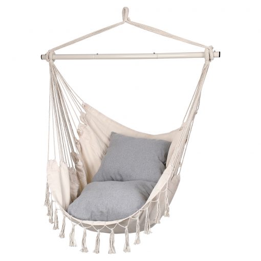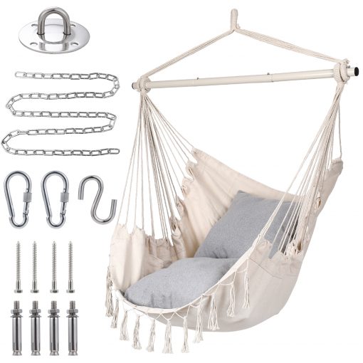 2 Cushions Included, Max 350 Lbs Capacity, Pocket for Books Macrame Swing Comfy Chair for Indoors or Outdoor
