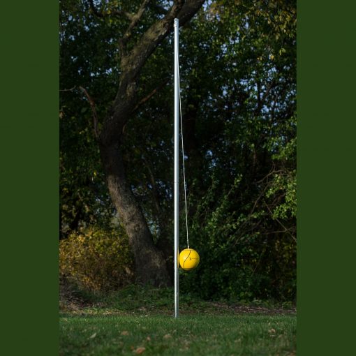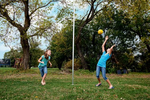 The Deluxe Tetherball Set is a childhood favorite to many. This item is sure to bring fun to every party! Form competitions at your next gathering and stretch those legs! This in ground set includes steel poles with an assembled height of a whopping 124” and diameter of 1 5/8”. Also, includes an 8” diameter ball and attached 12 foot rope. Ages 6 and up. Concrete base required. Adult assembly required.