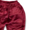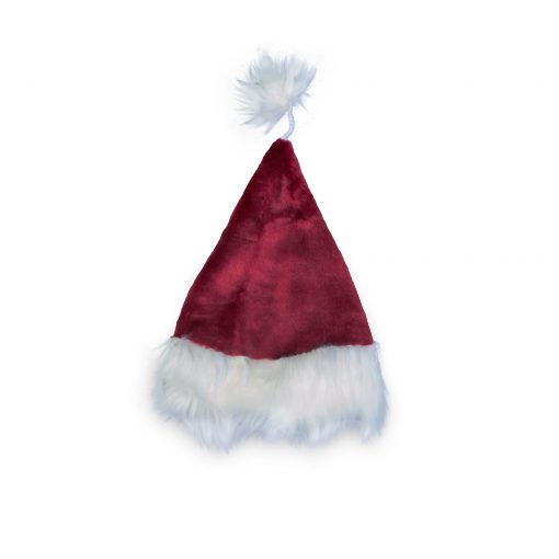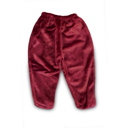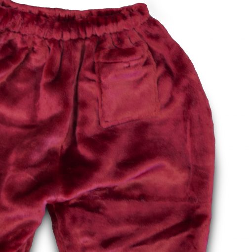 - The Jacket, Pants, and Hat are made of extra thick deep red velour trimmed in luxurious long plush faux fur