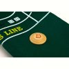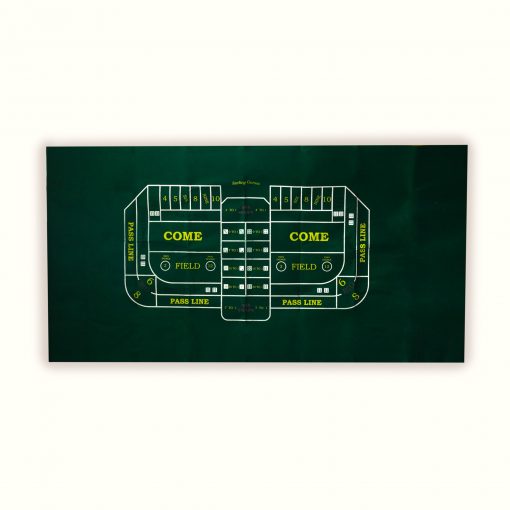 - Large, green felt layout combines Texas Hold’em and Craps